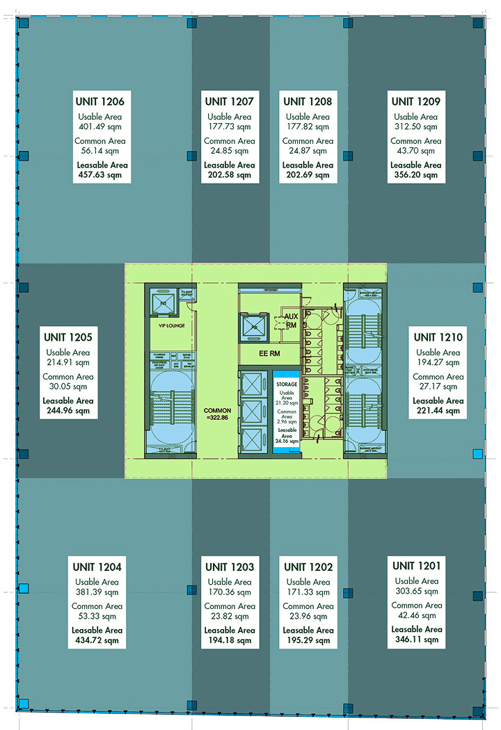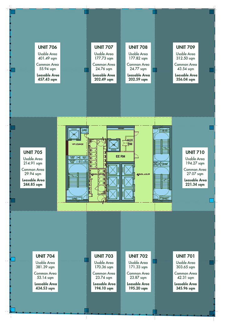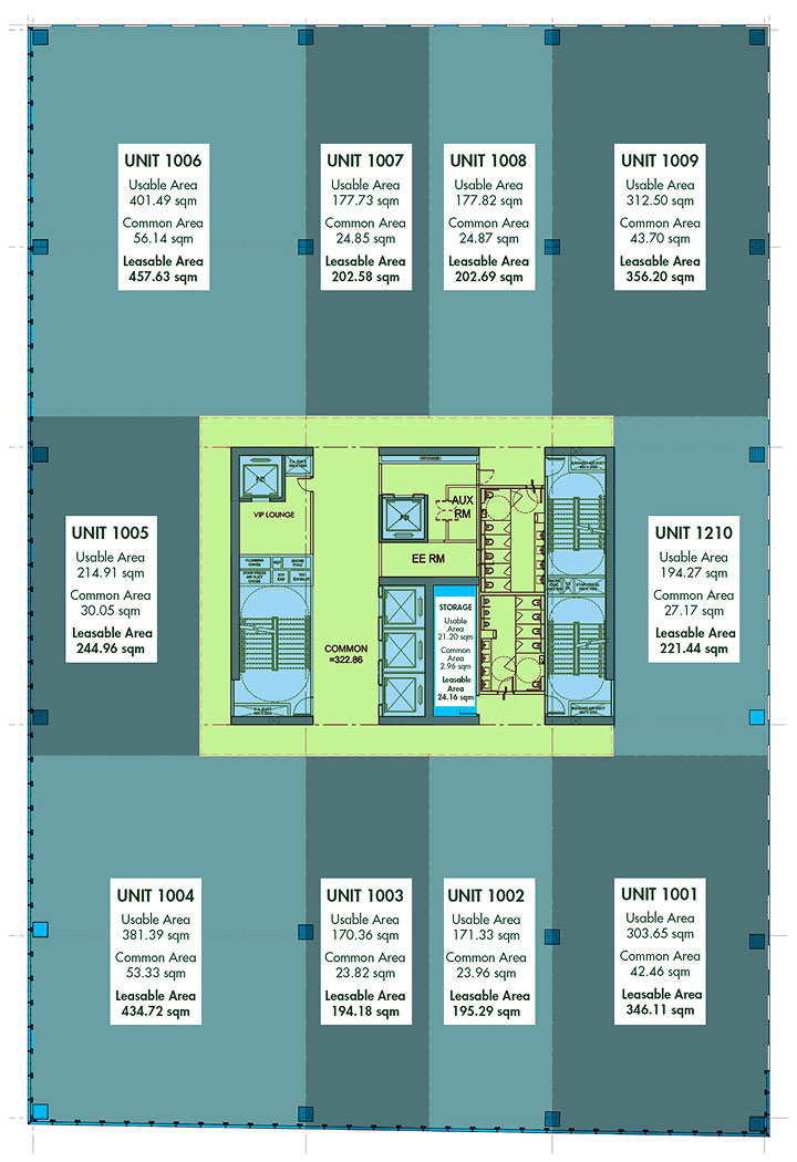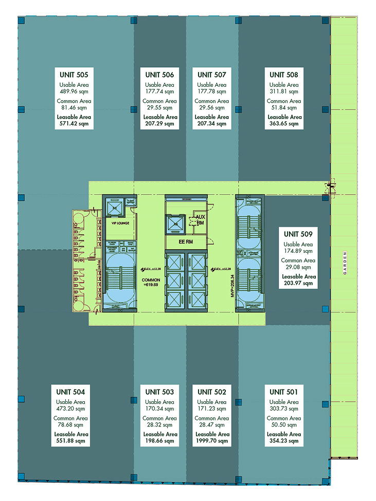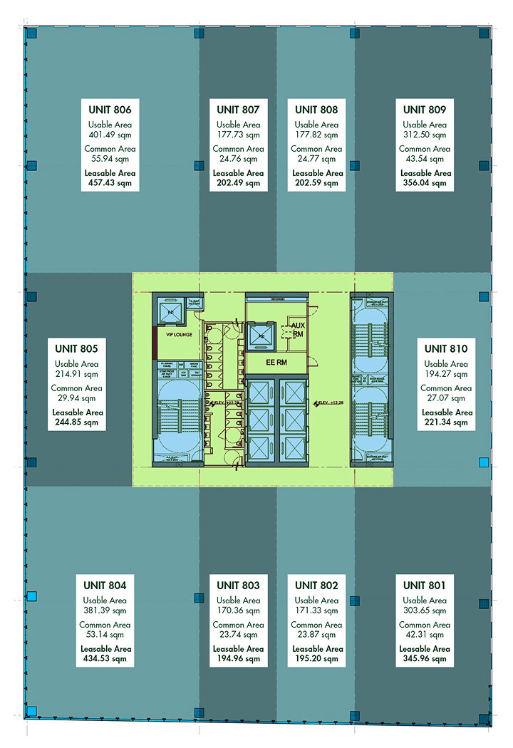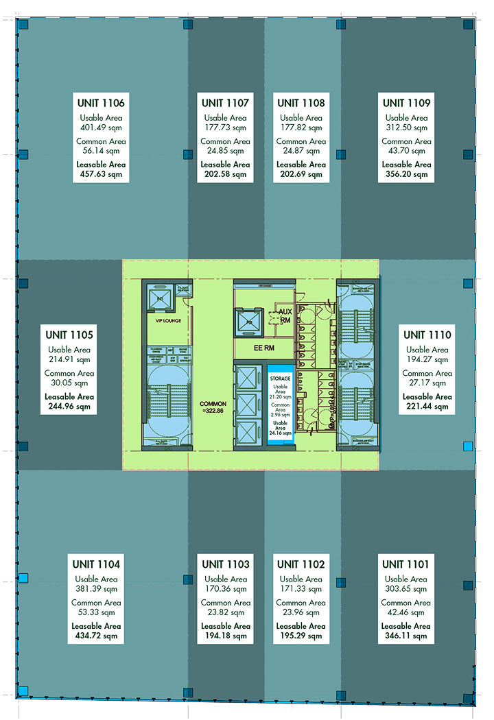 I-Land Bay Plaza provides larger-than-average floor plates of 2,849 square meters for workplaces, emphasizing flexibility in office design options for prospective tenants and occupants.